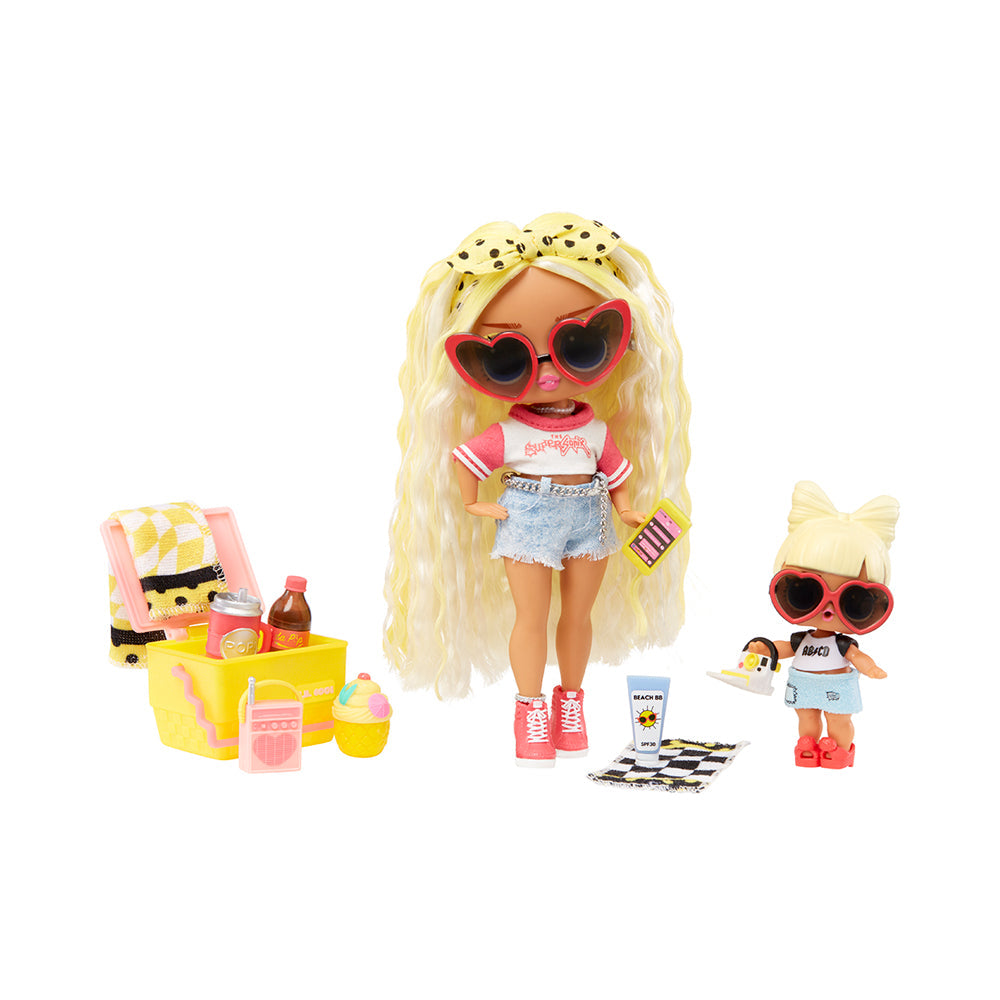 Introducing the all-new L.O.L. Surprise Tweens Babysitting Party! These Tweens are ready to take charge, so get ready for an adventure you've never had before. Rae Sands is planning the ultimate beach party for her Lil Sis SPF Q.T. She's put together a checklist for the perfect day - the first item on the list? Sunscreen and sunshine vibes! Unbox 20 surprises including a Tween fashion doll and a L.O.L. collectible doll. Rae Sands has stunning features, beautiful hair, and she comes articulated for tons of posing opportunities. Plus, Rae has multiple color change makeover surprises! Dip the towel in cold water and wipe her face to see what's revealed or dunk her hair in water and see it color change! Each box includes a Tween fashion doll, a L.O.L. collectible doll, multiple fierce outfits, accessories, a hairbrush, and a doll stand. Discover both Babysitting Party collections, Sleepover and Beach Party, for the ultimate L.O.L. Surprise adventure.