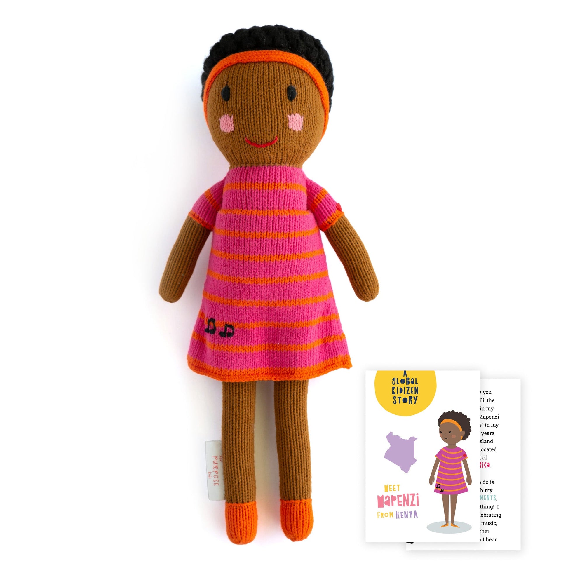 Meet, Mapenzi, the Global Kidizen Doll from Kenya! Mapenzi loves making music- with her voice, with instruments and just about anything. Celebrating her culture through music makes her body feel alive and is one of her favorite feelings in the world.